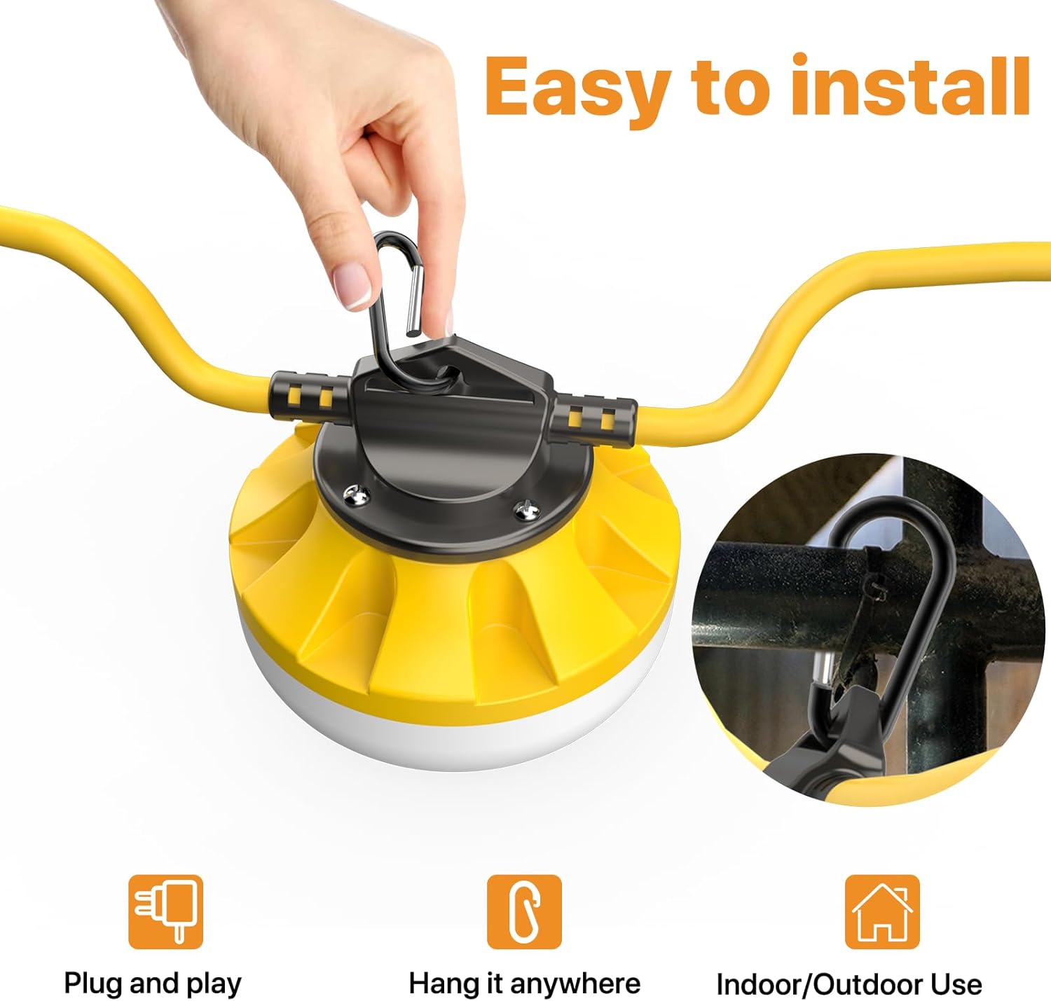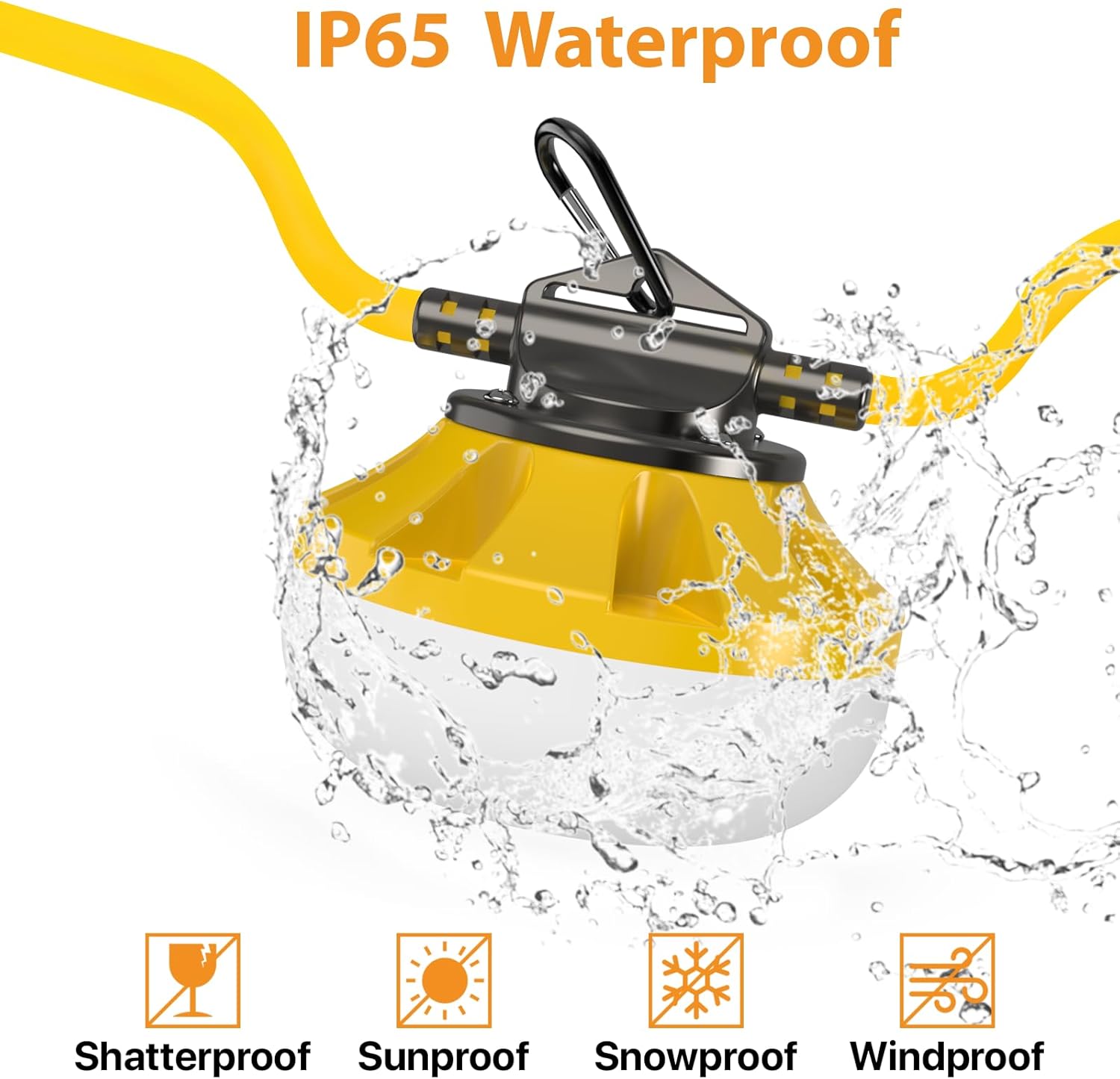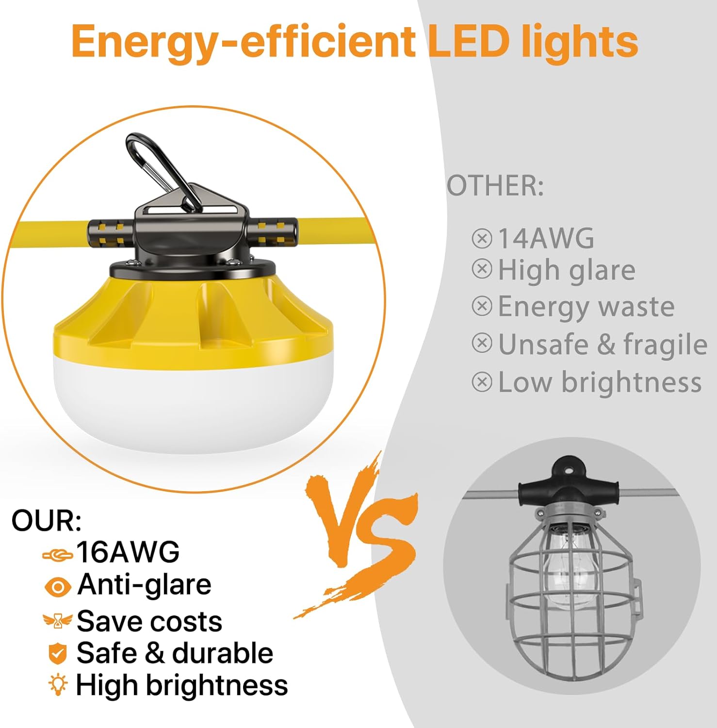 100FT Construction String Lights: 100W Led Construction String Lights with 5 Bulbs & Hooks, IP65 Attic Lighting 5000K Linkable Hanging Work Light for Crawlspace, Basement, Backyard