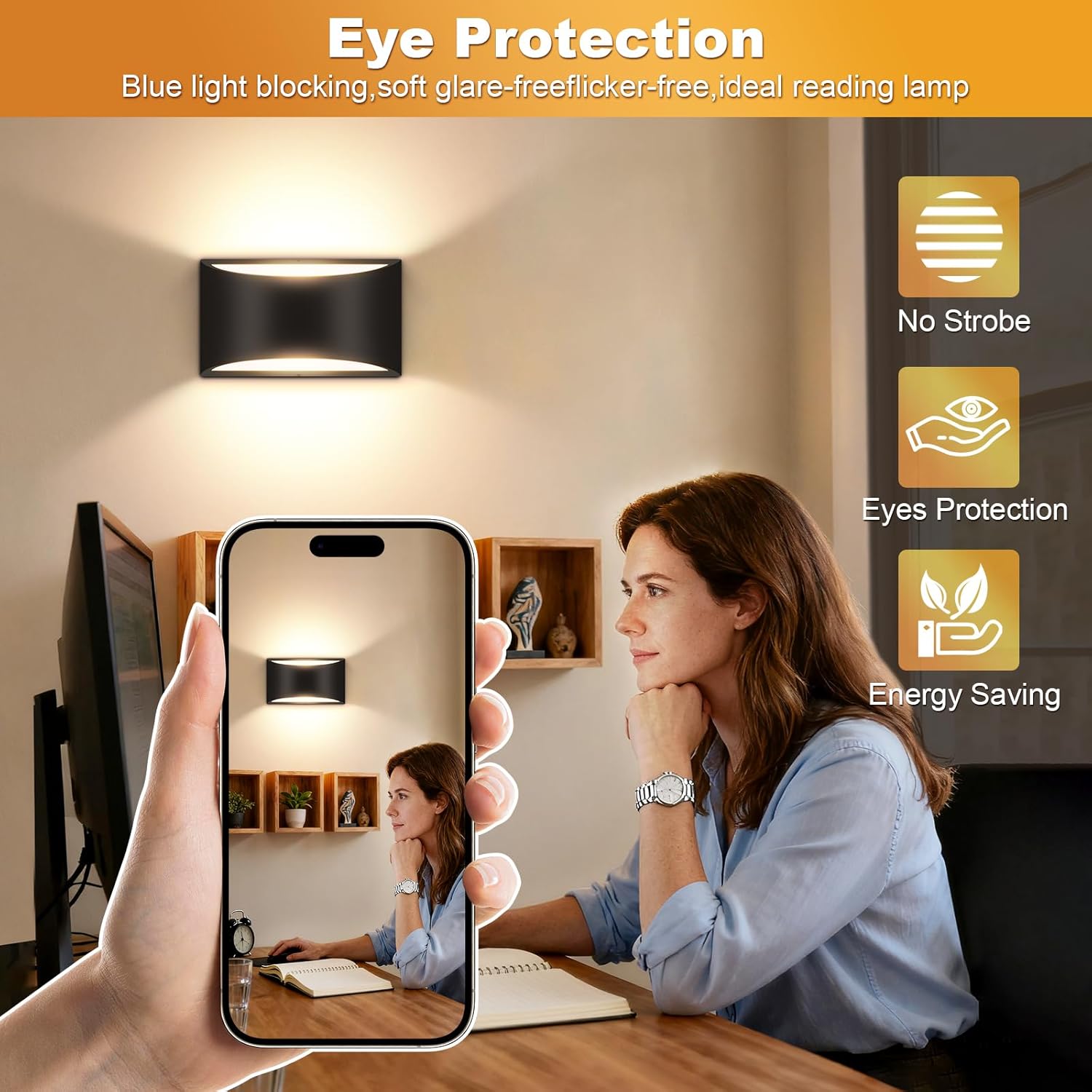 8 Pack Black Modern LED Wall Sconces, 3000K Warm White Hardwired Interior Wall Lights Up and Down Wall Mount Light for Bedroom,Living Room,Hallway(with G9 Bulbs)