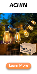 Achin Outdoor String Lights 150 Feet LED Waterproof Patio Lights with 50 Shatterproof Dimmable Warm Edison Bulbs String Lights for Outdoor Gazebo Bistro Wedding Birthday Party Lights, Connectable