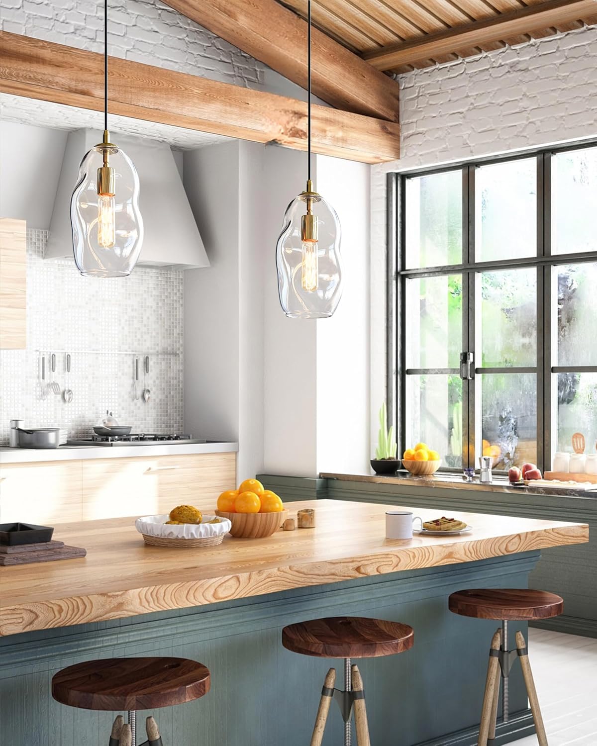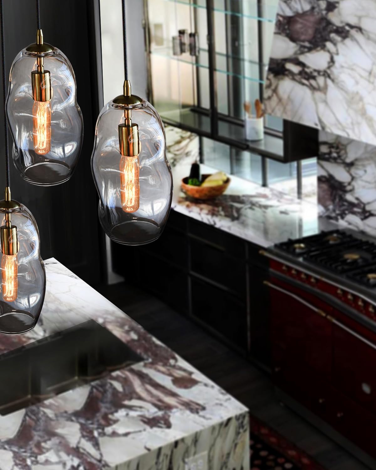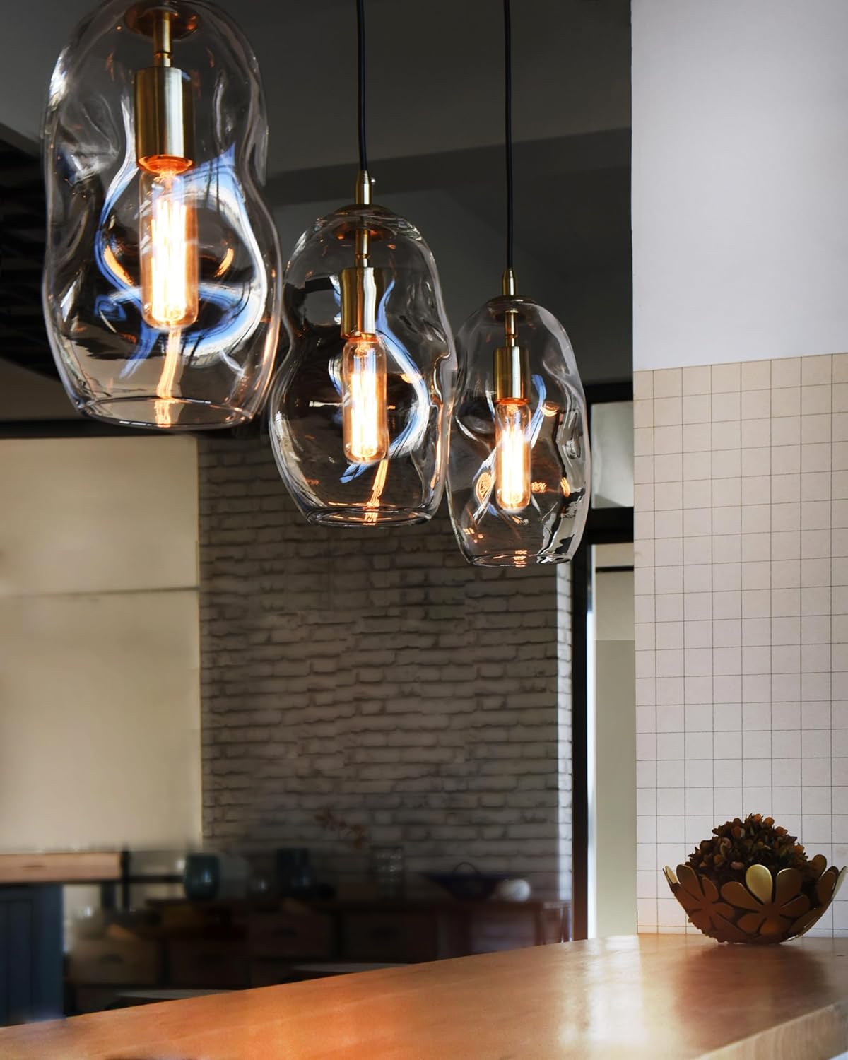 CASAMOTION Pendant Light Fixtures Glass Pendant Lights Kitchen Island Modern Gold Brass Kit Clear Organic Globe Bar Counter Dining Room Large Lamp Shade 12 Inch Height 1 Pack