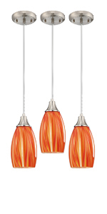Orange with red art glass pendant lights-3pack