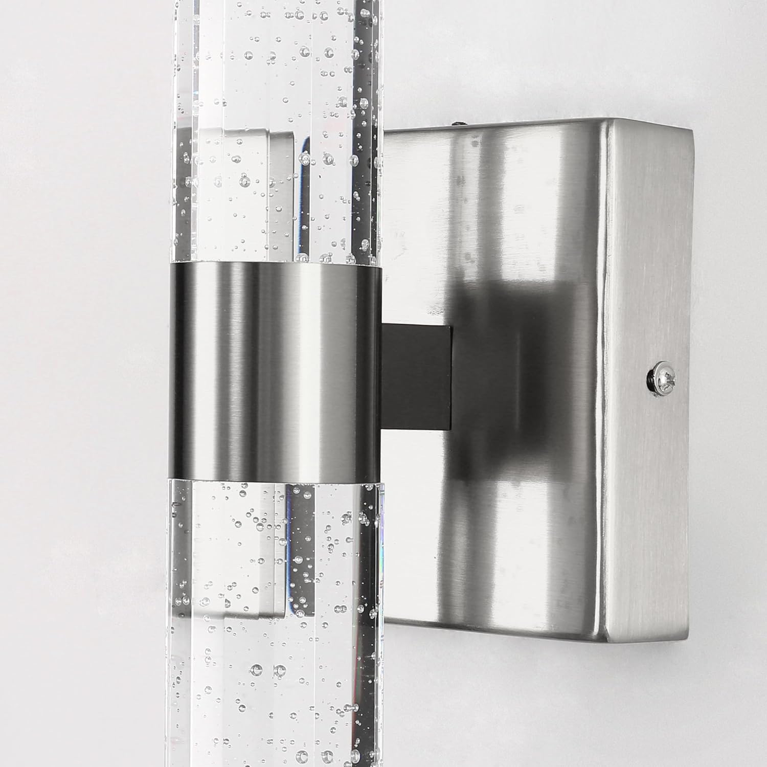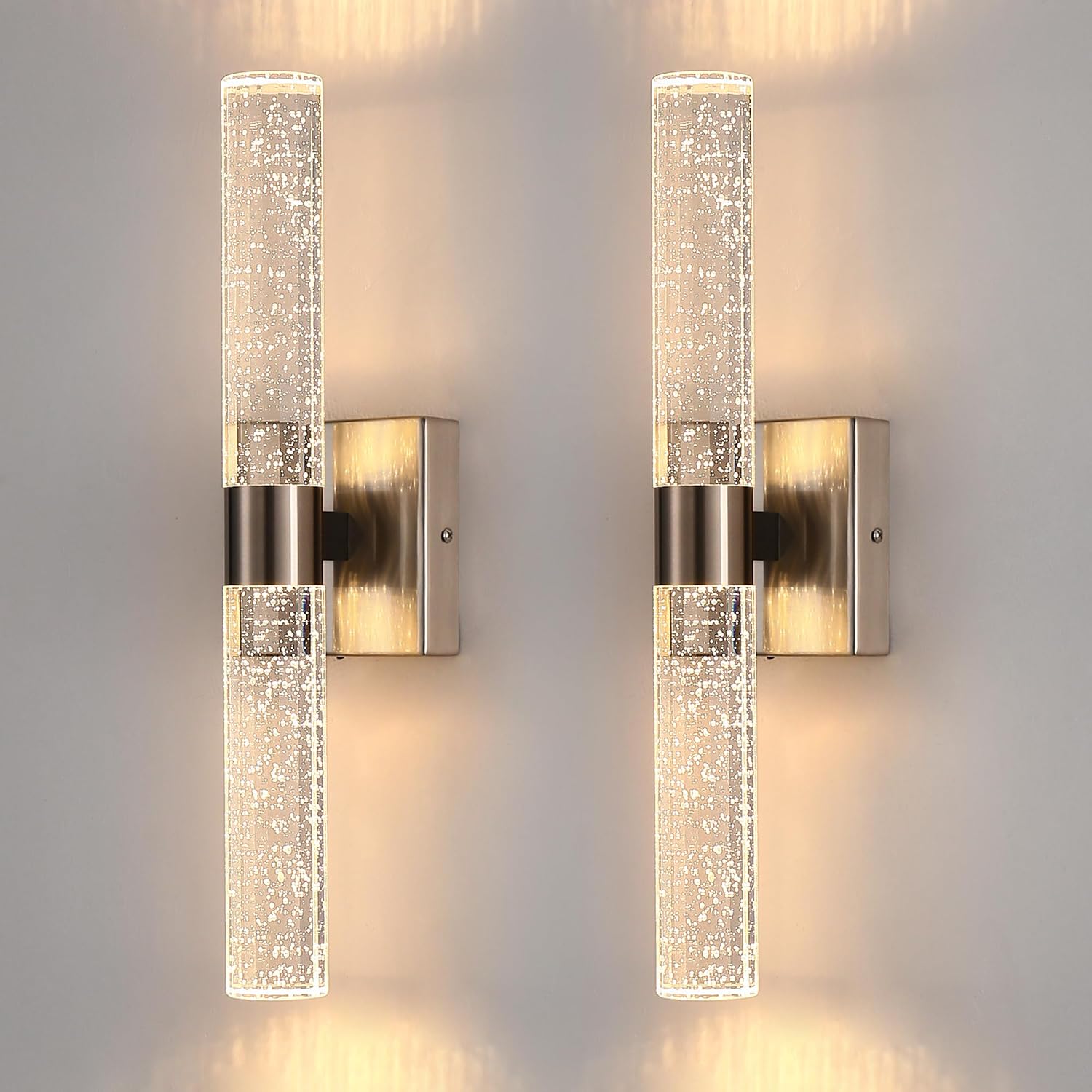 DORESshop Modern Wall Sconces Set of Two, 3CCT Crystal Bathroom Sconces Wall Light, Brushed Nickel Vanity Light Fixture, Sconce Wall Decor Set of 2, Wall Lights for Bedroom, Living Room, Hallway 18in