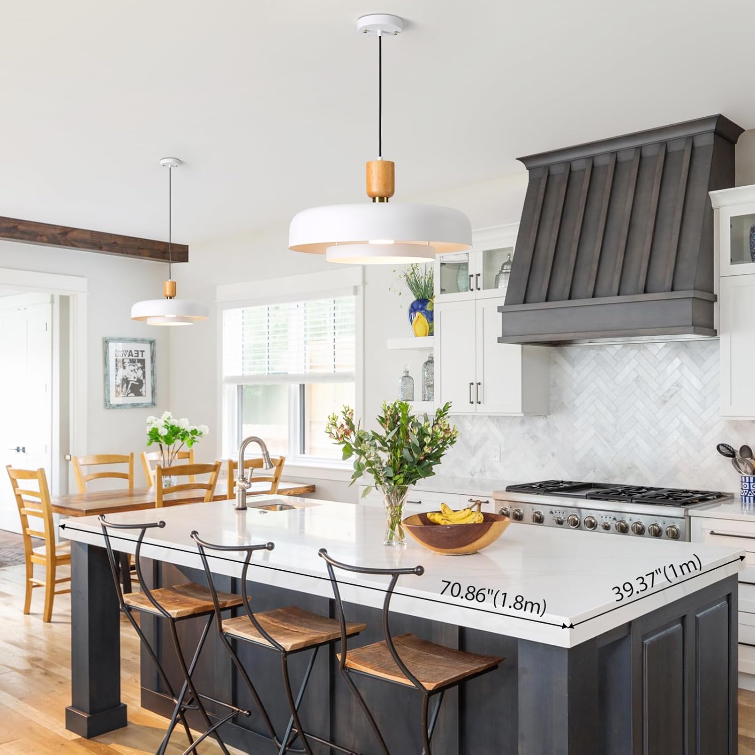 Modern Large Pendant Light 19.68 inch, 2 Tiers Matte White Shade, Natural Wood and Brass Accent, Mid Century Chandelier for Dining Room,Kitchen,Living Room