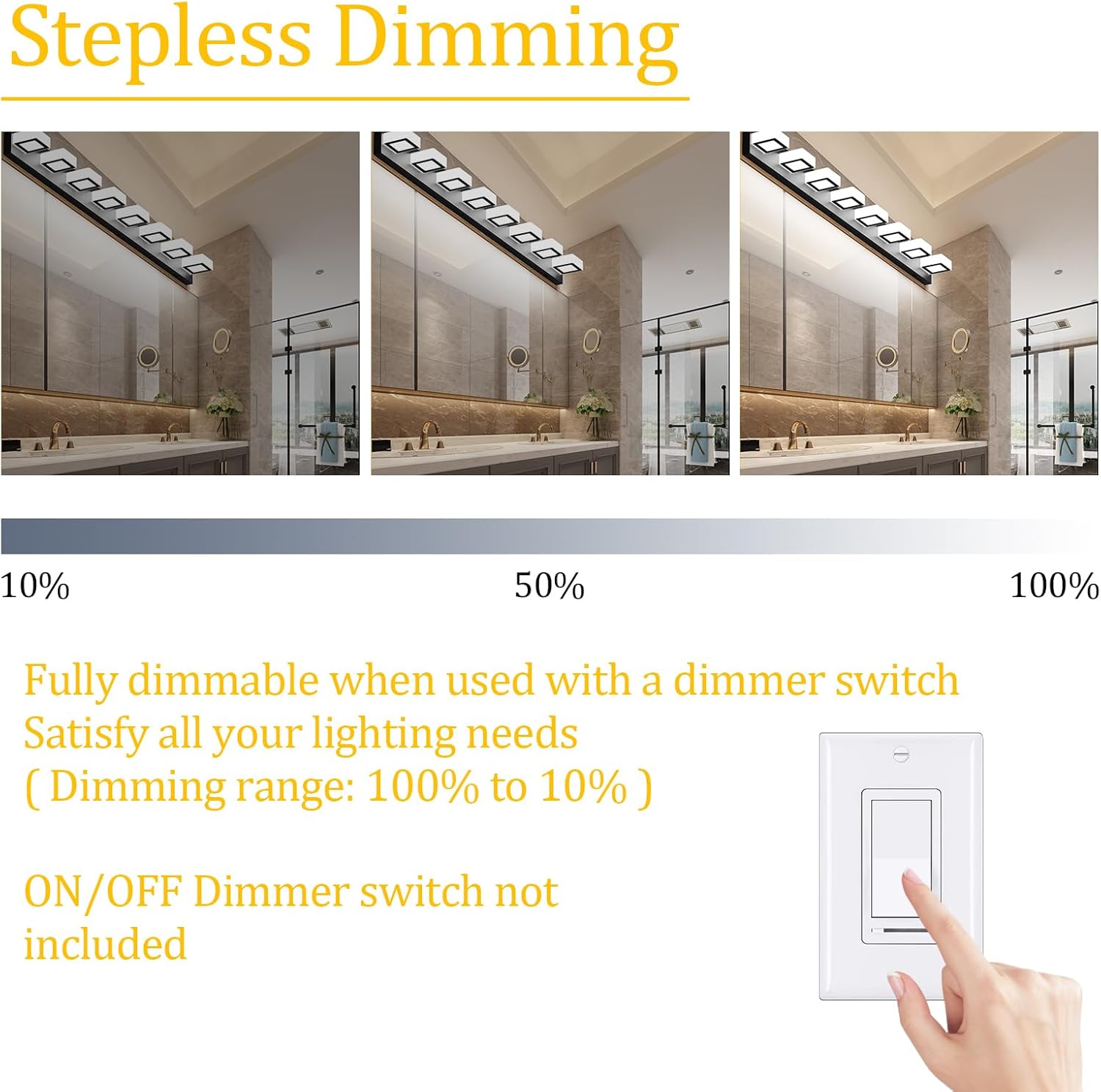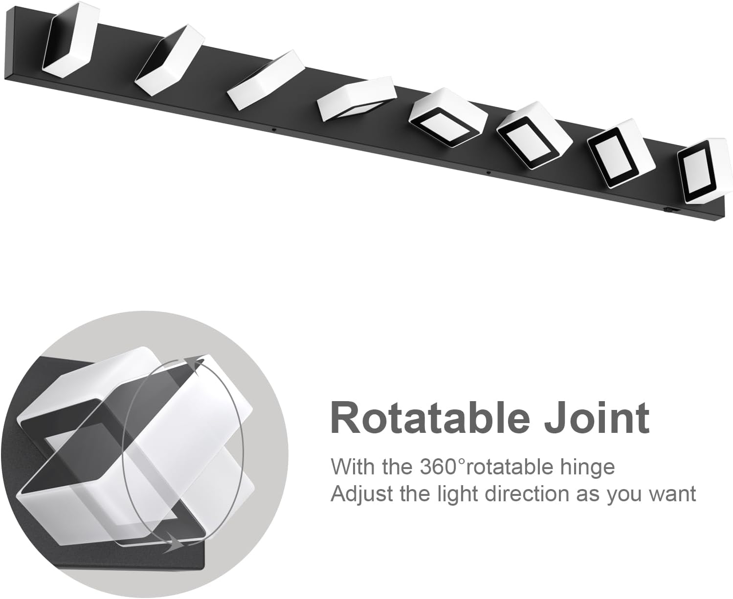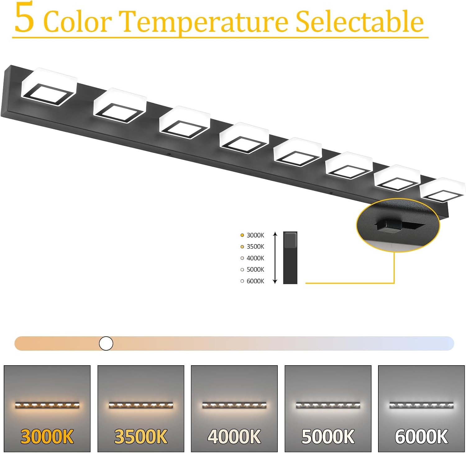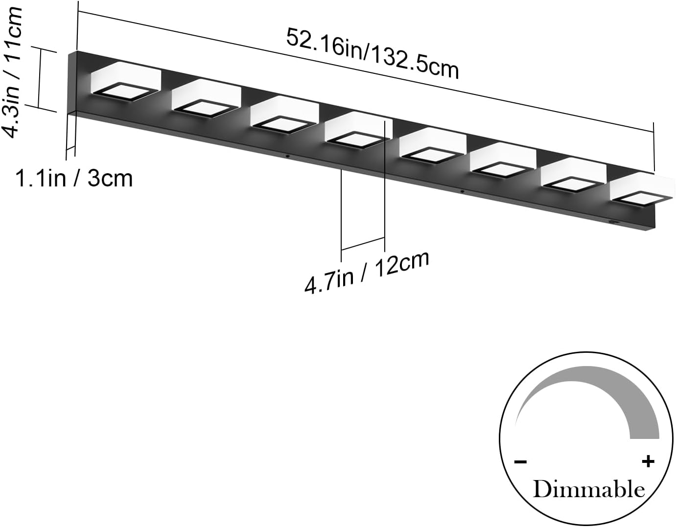 Ralbay 52inch Black Vanity Lights 8 Lights Dimmable 5 Color Temperature Acrylic Modern LED Bathroom Vanity Lighting Fixtures Matte Black